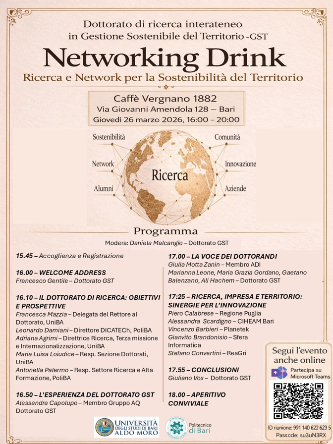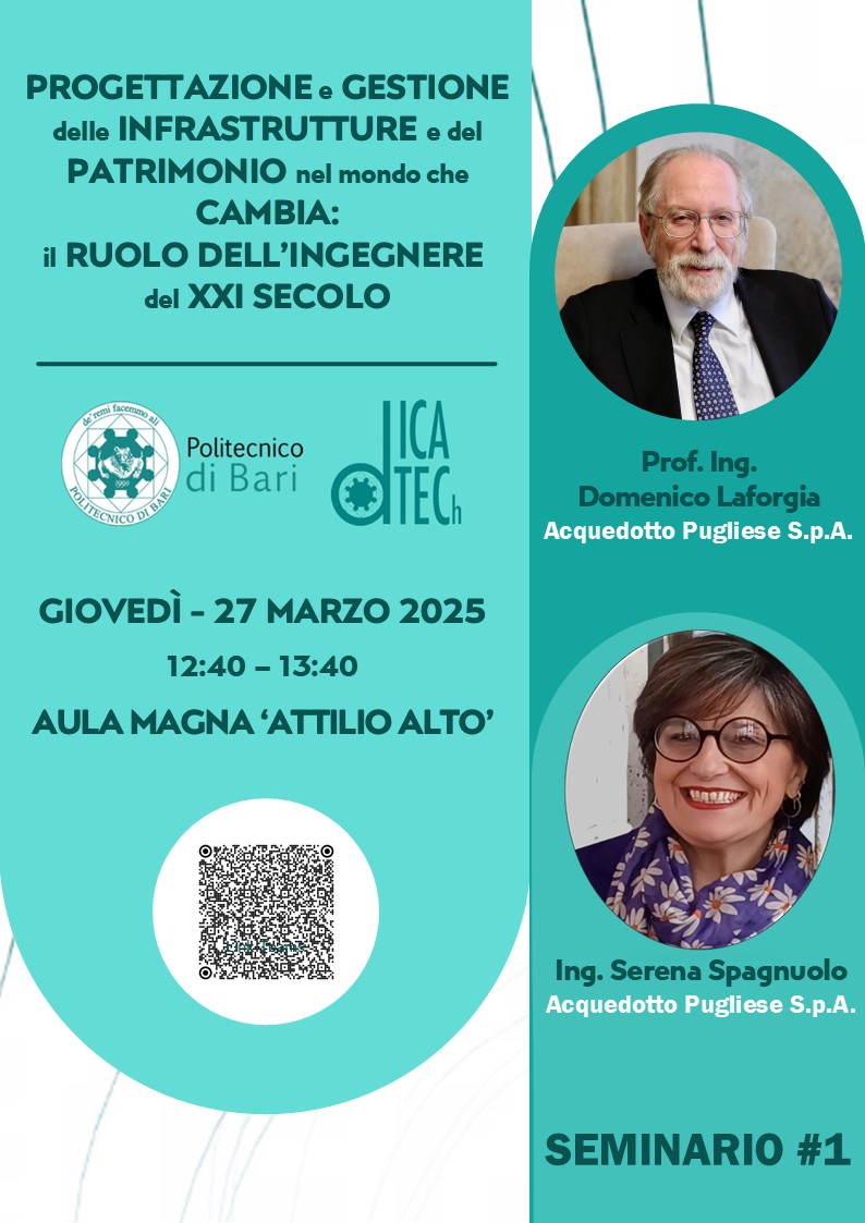 L’evento si svolgerà nell’atrio “Claudio Cherubini” del Politecnico di Bari ed in memoria del Prof. Ing. Claudio Cherubini.