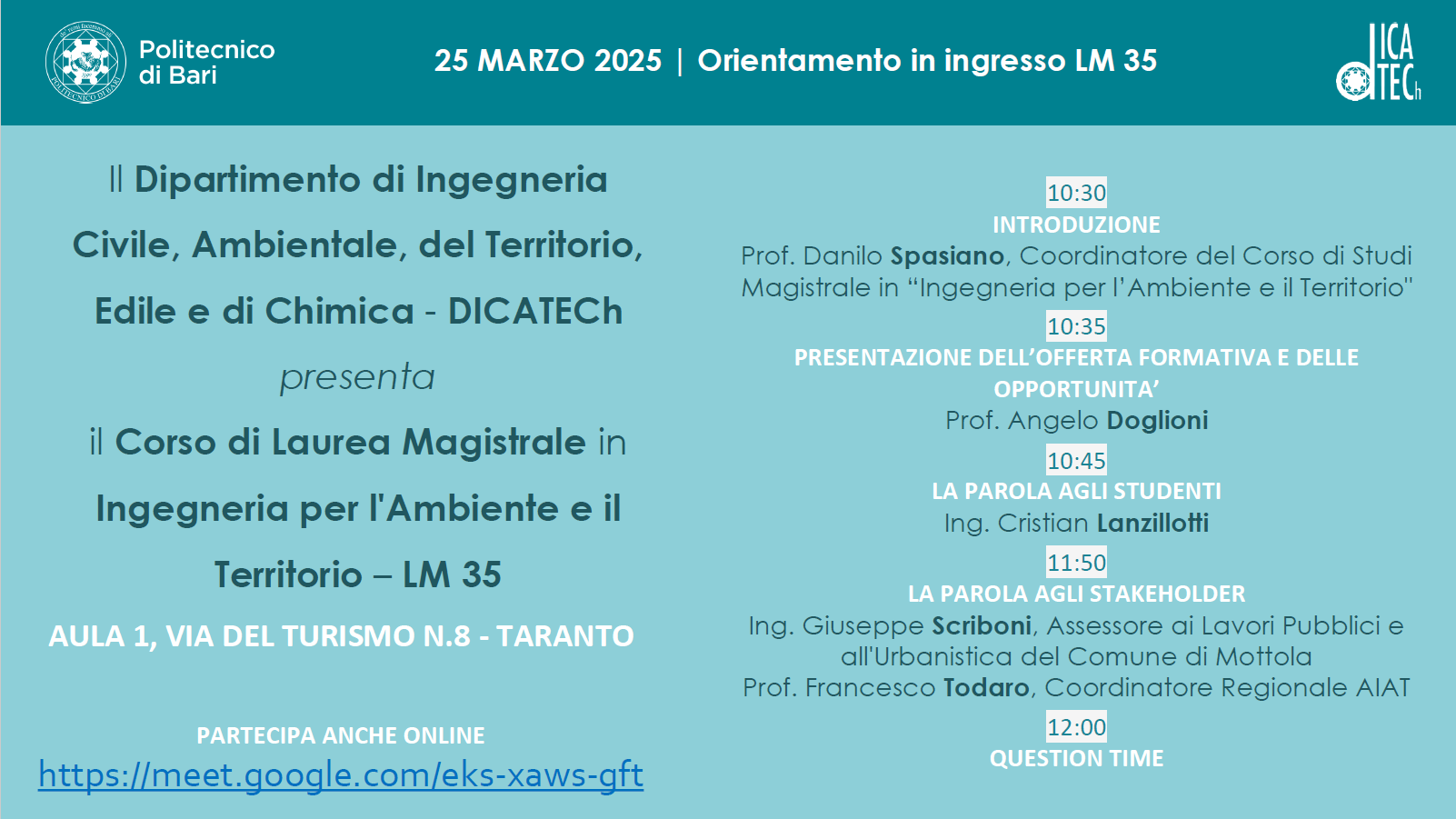Corso di Laurea Magistrale inIngegneria per l'Ambiente e ilTerritorio – LM 35
